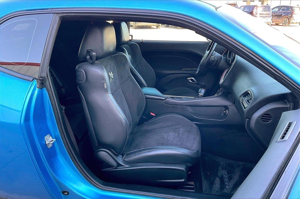 Power forward with style and performance behind the wheel of our 2016 Dodge Challenger R/T Scat Pack Coupe taking center stage in Contusion Blue! This machine serves up raw power and a head-turning roar with a fierce 6.4 Liter HEMI V8 delivering 486hp while paired to an 8 Speed Automatic transmission to take you from 0-60 in just over 4 seconds. This Rear Wheel Drive team has you still scoring nearly 23mpg on the road! With Brembo high-performance brakes and Bilstein Suspension, you are primed for driving perfection! Bold and aggressive, the unique physique of our R/T Scat Pack is accentuated with huge polished aluminum wheels.