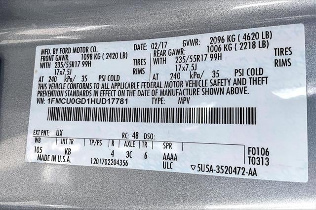 Clean CARFAX. Ingot Silver 2017 Ford Escape SE FWD 6-Speed Automatic 1.5L EcoBoost