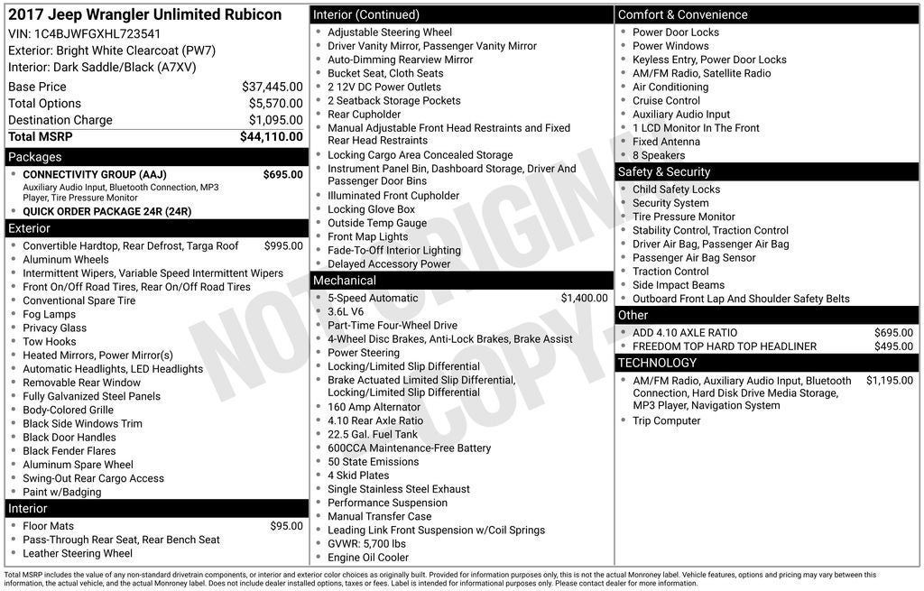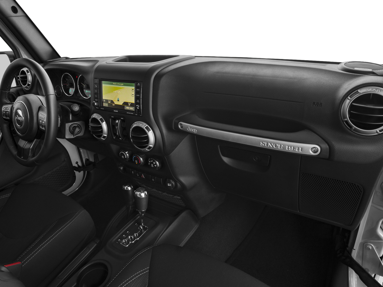 Imagine yourself behind the wheel of our Rubicon and try to suppress a smile! It features supportive seating, remote keyless entry, air conditioning, power windows/locks, steering-mounted audio controls, and a terrific sound system with available satellite radio.