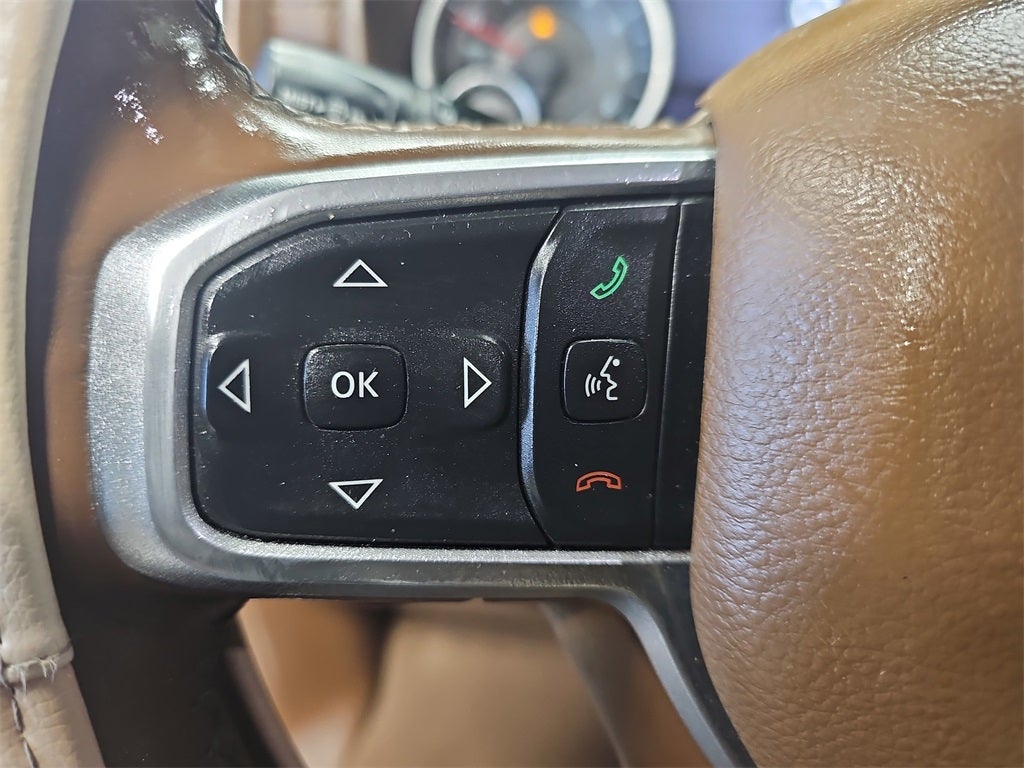The cabin of our Laramie is set up to exceed your needs and wants with the Level 2 Equipment Package's dual-zone automatic climate control, a heated steering wheel with mounted audio controls, heated/ventilated leather-trimmed seats, heated rear seats, and a universal garage door opener. The Uconnect 8.4-inch touchscreen display with the media hub, nineteen-speaker Harman/Kardon audio, available satellite radio, integrated voice command with Bluetooth®, and available WiFi all help to keep you safe in touch as you make your way.