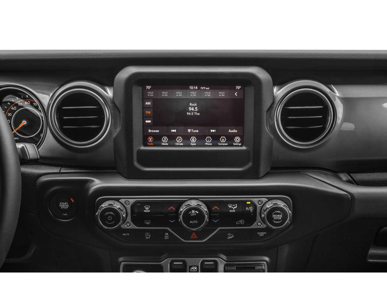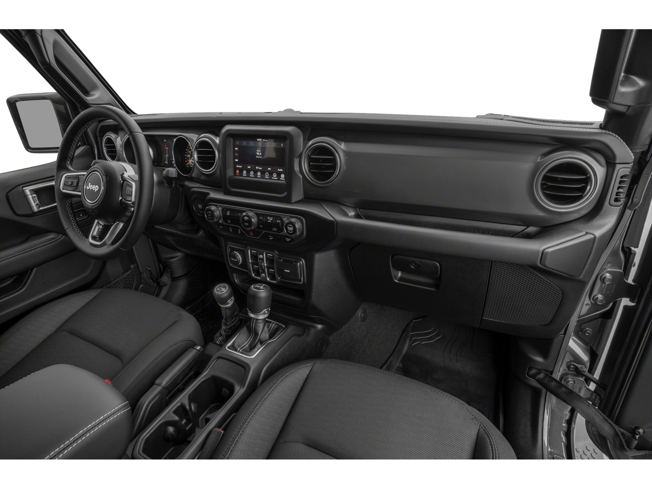 Get behind the wheel of our Sahara cabin, and you'll see our Cold Weather Pack adds heated cloth front seats and a heated multifunction steering wheel to dual-zone automatic climate control, power accessories, pushbutton start, and plenty of cargo space. You're treated to a 7-inch touchscreen, a 7-inch driver display, Apple CarPlay/Android Auto, Bluetooth®, and an eight-speaker sound system for your technology needs. Exploring is easy when features like these are on board!