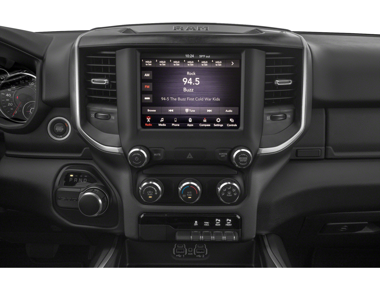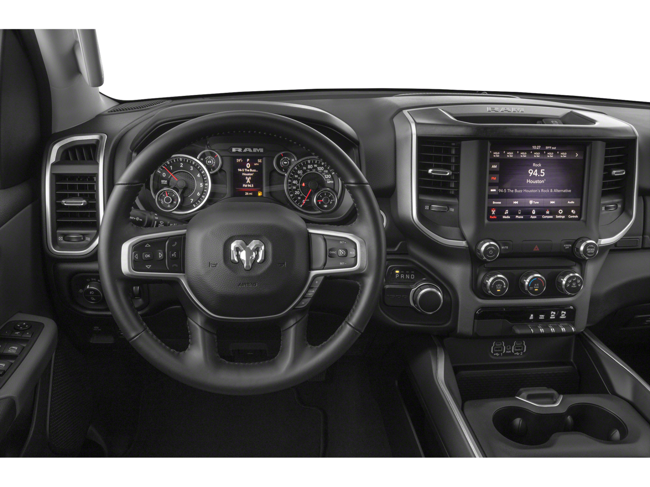 Radio: Uconnect 4 w/8.4" Display, Rear Window Defroster, ParkSense Front/Rear Park Assist w/Stop, Rear View Auto Dim Mirror, Power Adjustable Pedals, Rear Power Sliding Window, Rear Dome w/On/Off Switch Lamp, Glove Box Lamp, Power 4-Way Driver Lumbar Adjust, 115V Auxiliary Rear Power Outlet, Power 8-Way Driver Seat, 2 USB Full Function/Charge Only Media Hub, Heated Front Seats, Heated Steering Wheel, Foam Bottle Insert (Door Trim Panel), Class IV Receiver Hitch, Dampened Tailgate, Security Alarm, Black Premium Power Mirrors, Big Horn IP Badge, Remote Start System, SiriusXM Satellite Radio, 400W Inverter, Air Conditioning ATC w/Dual Zone Control, 115V Auxiliary Power Outlet, Universal Garage Door Opener, 2nd Row In Floor Storage Bins, Sun Visors w/Illuminated Vanity Mirrors