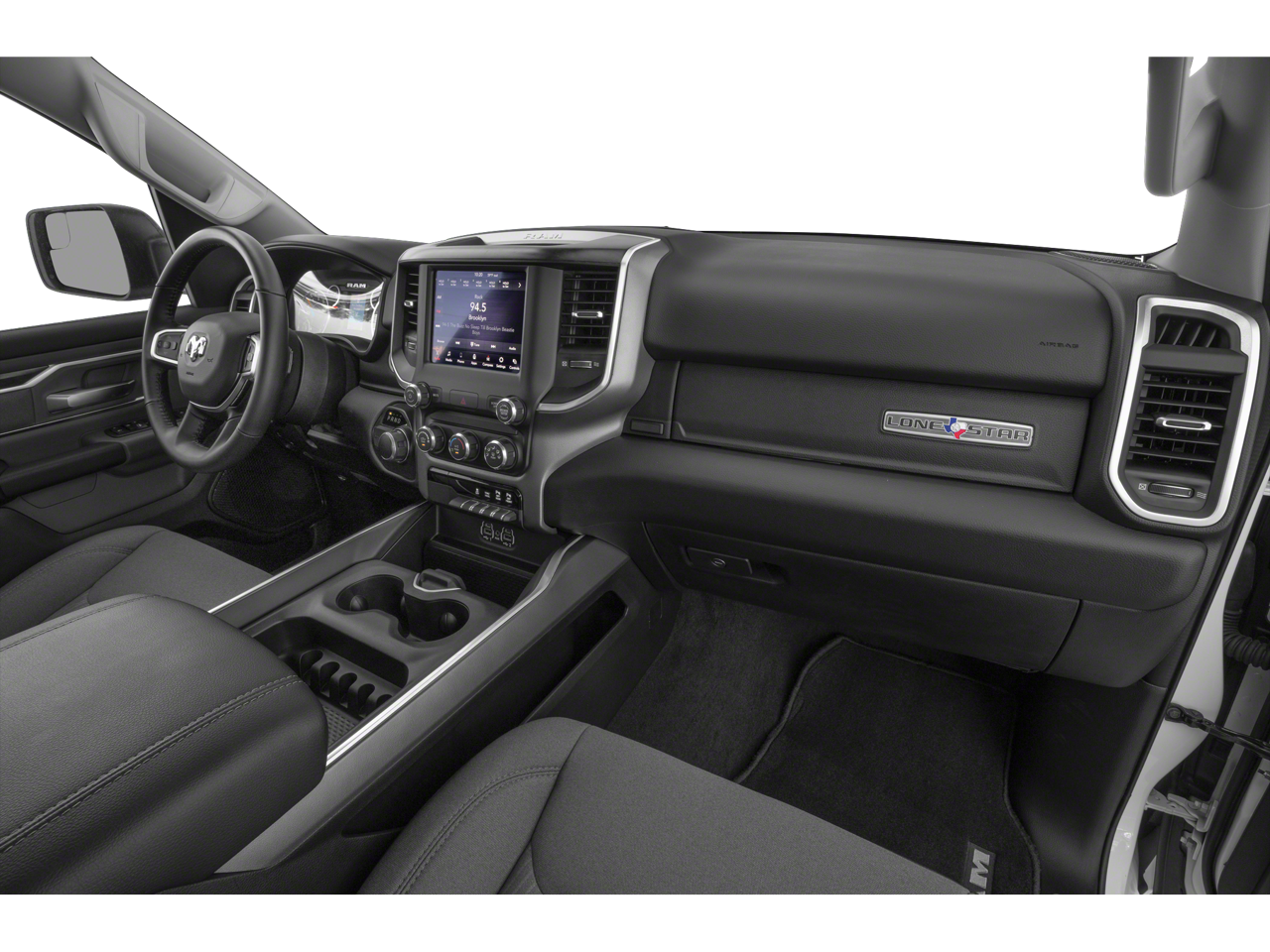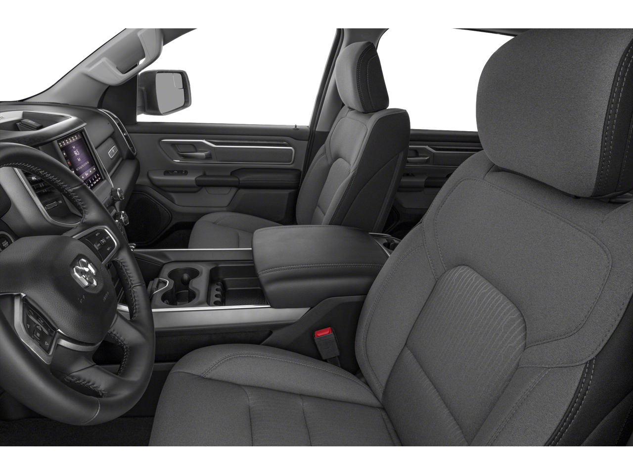 Thoughtful amenities greet you in our Big Horn cabin. Highlights include our Level 2 Pack, which adds heated cloth front seats, eight-way power for the driver, a heated leather steering wheel, dual-zone automatic climate control, remote start, a rear power window, power-adjustable pedals, a 7-inch driver display, and upgraded Uconnect technology anchored by an 8.4-inch touchscreen. You can use that or voice control to manage Android Auto, Apple CarPlay, Bluetooth®, and a six-speaker sound system.