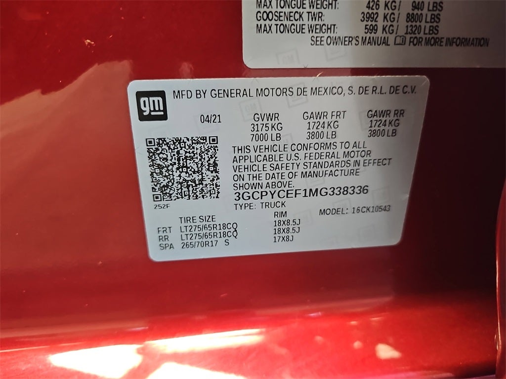 Off the road or on, our bold 2021 Chevrolet Silverado 1500 Custom Trail Boss Crew Cab 4X4 in Cherry Red Tintcoat puts you in charge on every drive! Motivated by a 5.3 Liter EcoTec3 V8 offering 355hp tethered to a 6 Speed Automatic transmission with tow/haul mode for confident capability. For rugged terrain, this Four Wheel Drive truck is upgraded with a two-speed transfer case, a locking rear differential, and a Z71 off-road suspension, plus it scores nearly 21mpg on the highway. Our Trail Boss looks tough with black alloy wheels, red recovery hooks adding flair to a powerful grille, heated power mirrors, running boards, a durable bedliner, a tonneau cover, and the convenience of a CornerStep rear bumper, plus the EZ Lift/Lower tailgate.