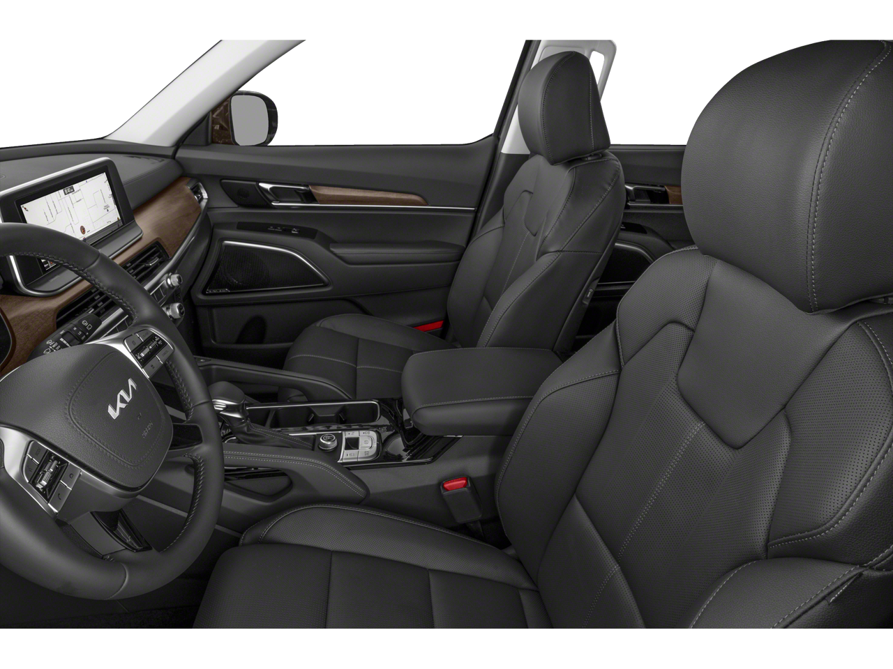 Spacious and well-equipped, our SX cabin supports better family adventures with leather heated/ventilated front seats, second-row captain's chairs, a versatile third row, a heated leather-wrapped steering wheel, dual-zone automatic climate control, pushbutton ignition, remote start, and a premium infotainment setup that puts you in charge of a 10.25-inch touchscreen, full-color navigation, Android Auto/Apple CarPlay, Bluetooth®, wireless charging, Harman Kardon audio, and a cabin intercom for keeping tabs on rear passengers.