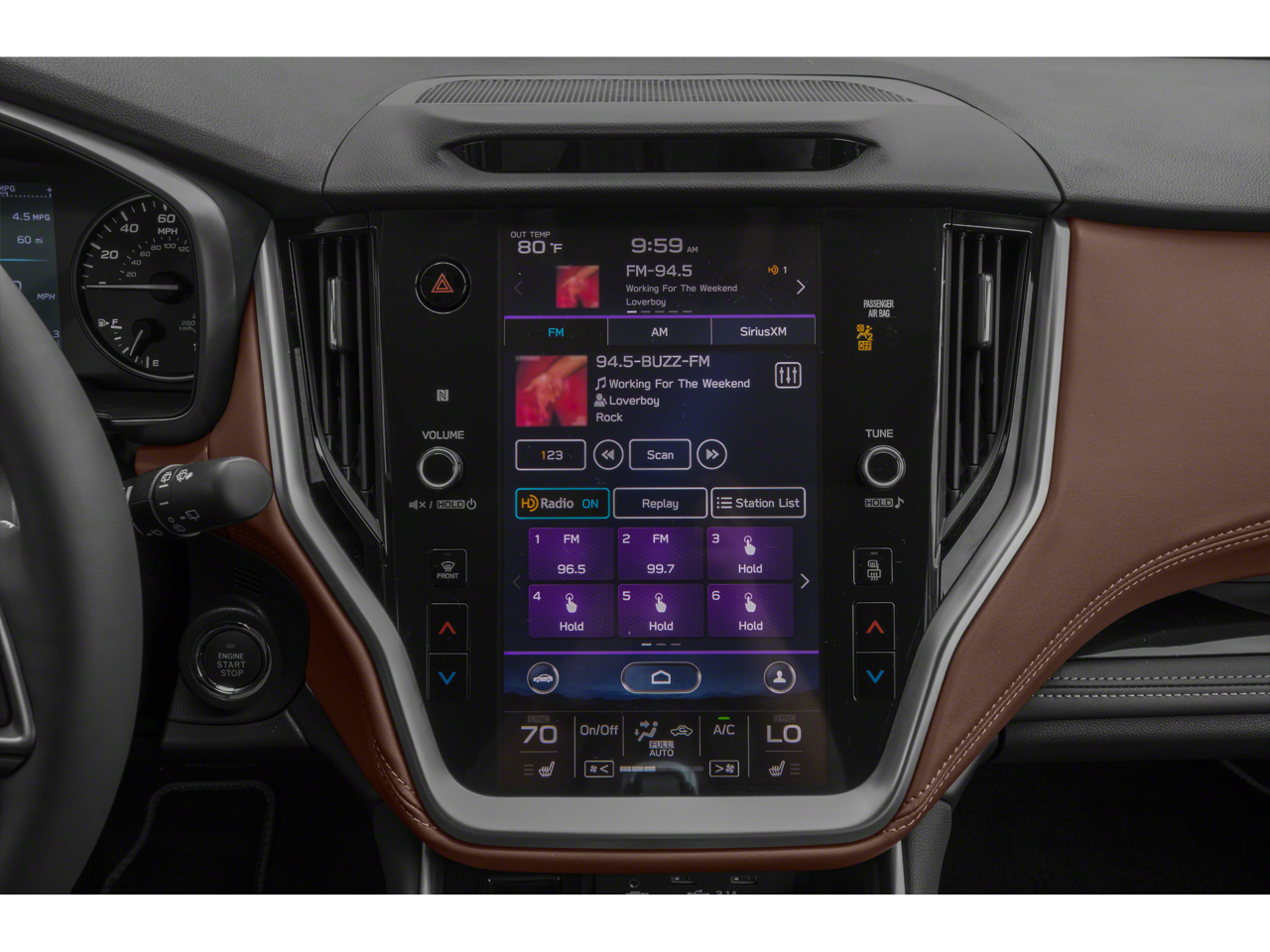 - Radio: Subaru STARLINK 11.6" Multimedia Nav System -inc: AM/FM stereo, HD Radio, multi-touch gesture high resolution display screen, voice activated controls and navigation, Bluetooth audio streaming and hands-free phone connectivity w/SMS text messaging (refer to subaru.com for cell phone compatibility), Near Field Communication (NFC), iPod control capability, SiriusXM All Access radio (4 months free trial/subscription required after), SiriusXM Traffic (3 years free trial/subscription required after), SiriusXM Travel Link (3 years free trial/subscription required after), smartphone integration: Android Auto, Apple CarPlay and STARLINK cloud applications (refer to subaru.com for app availability), USB and Over The Air (OTA) audio system update, USB/Map Over The Air (MOTA) TomTom navigation system update (3 years free map updates), 576 watt harman/kardon surround sound system w/12 speakers, 3.5mm auxiliary input jack and dual USB input ports