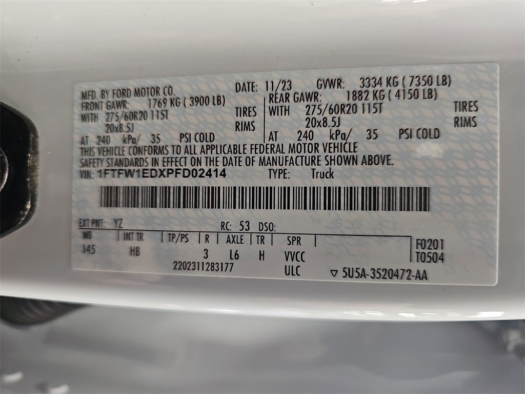 Our One Owner, Accident Free 2023 Ford F-150 Lariat SuperCrew 4X4 with the FX4 Off-Road Pack is intelligent, iconic, and impressively strong in Oxford White! Motivated by a Twin-TurboCharged 3.5 Liter PowerBoost Hybrid V6 and an Electric Motor supplying a combined 430hp to a 10 Speed Automatic transmission. Also boasting an onboard generator, this Four Wheel Drive truck sees nearly 23mpg on the highway with enhanced capability from our FX4 Pack. It adds off-road shocks, Rock Crawl mode, robust skid plates, hill-descent control, and a bold FX4 bodyside decal to our F-150's LED lighting, chrome bumpers, chrome-like wheels, a spray-on bedliner, a SecuriCode keypad, and a remote-release/power-locking tailgate.
