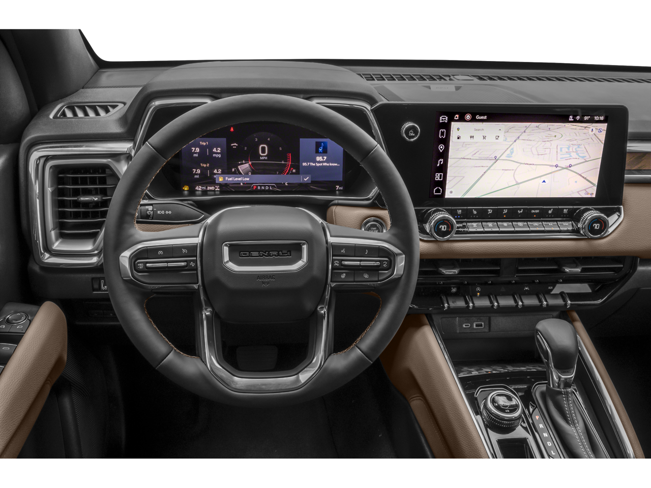The high-end details in our luxurious Denali cabin include heated/ventilated leather power front seats, a heated sporty-style steering wheel, dual-zone automatic climate control, remote start, a sliding rear window, and a rear defogger. An 11-inch driver display, an 11.3-inch touchscreen, an off-road performance display, Bose audio, WiFi compatibility, Google Built-in, wireless Apple CarPlay/Android Auto, and Bluetooth® lead the way for rewarding technology.