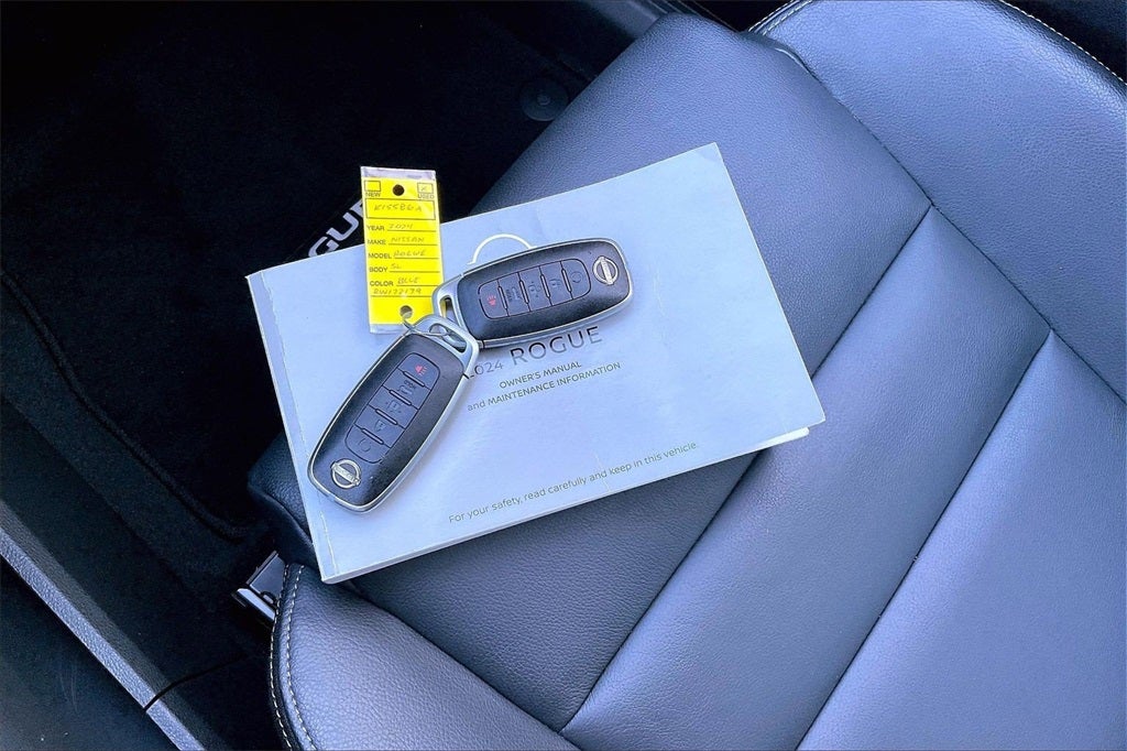 Our One Owner 2024 Nissan Rogue SL AWD is known for its bold versatility and sophisticated Deep Ocean Blue Metallic good looks! Powered by a TurboCharged 1.5 Liter Variable Compression 3 Cylinder offering 201hp to an XTRONIC CVT that helps deliver an extra boost to your driving. This All Wheel Drive SUV also features a limited-slip differential and responsive handling, and it returns nearly 34mpg on the highway. Rugged yet refined, our Rogue rides with LED lighting, a power liftgate, eye-catching alloy wheels, a sunroof, and heated power mirrors with reverse tilt-down and built-in turn signals.