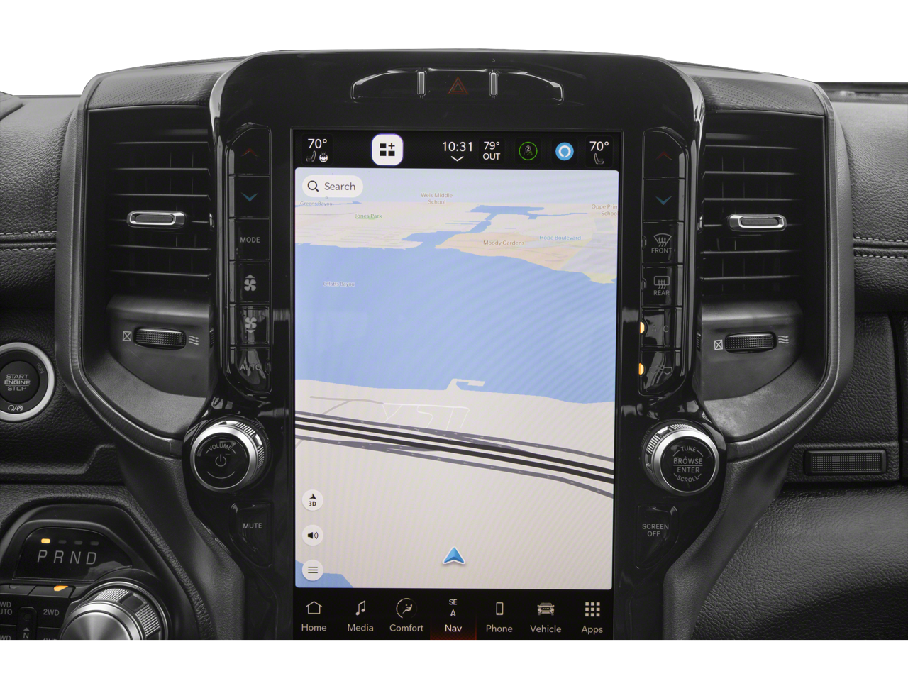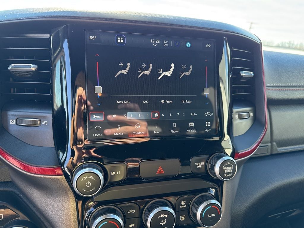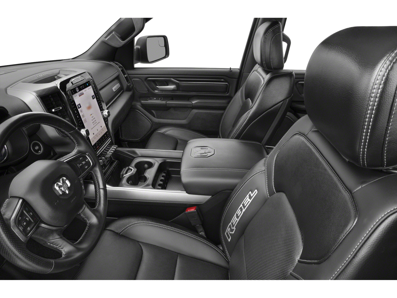 Rewarding features in our Rebel cabin include comfortable cloth seats, a premium steering wheel, dual-zone automatic climate control, pushbutton ignition, keyless entry, and a 115V power outlet. A 12.3-inch driver display and an 8.4-inch touchscreen create a high-tech look as they support full-color navigation, WiFi compatibility, Android Auto/Apple CarPlay, Bluetooth®, voice control, and a six-speaker sound system.