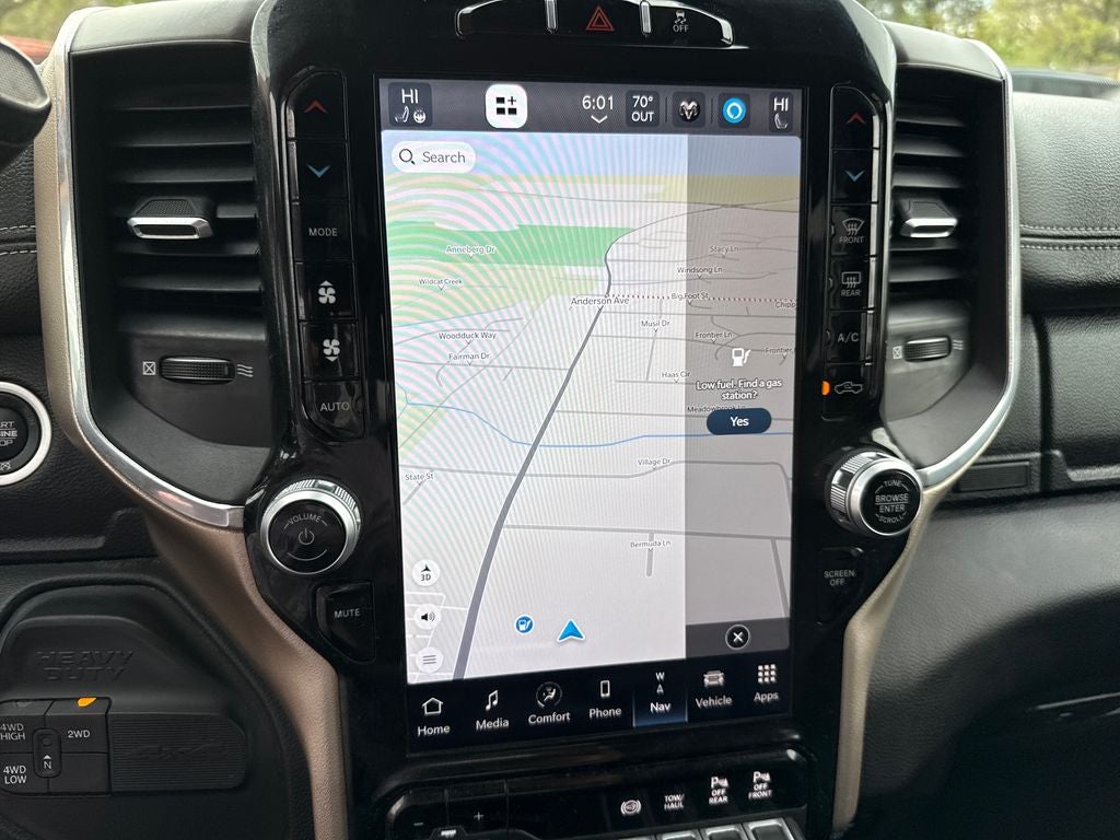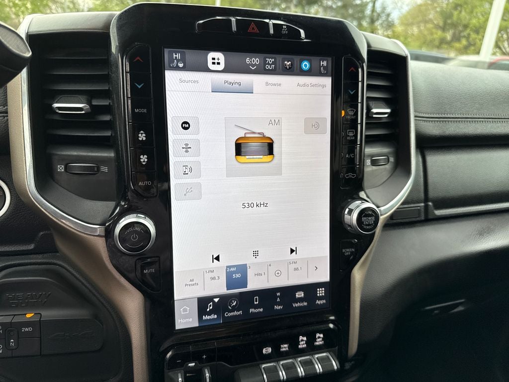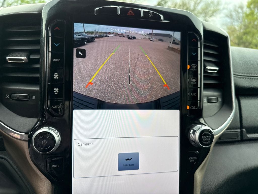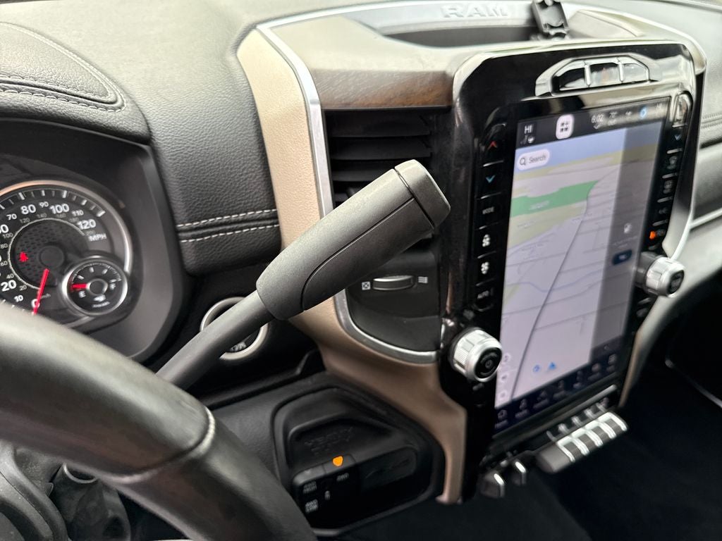 Our Laramie cabin lets you enjoy commanding capability in comfort, thanks to its heated/ventilated leather power front seats, a leather-wrapped heated steering wheel, dual-zone automatic climate control, an interior 115V/400W outlet, keyless access/ignition, power-adjustable pedals w/memory, power sliding rear window, and remote start. Full-color navigation helps you find your way as you stay connected with a 12.0-inch touchscreen, WiFi compatibility, Amazon Alexa compatibility, Android Auto/Apple CarPlay, Bluetooth®, voice control, and Alpine audio.