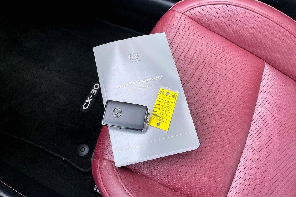 Master every mile in our One Owner 2025 Mazda CX-30 S Carbon Edition AWD that's up for adventure in a stunning Aero Gray Metallic finish! Motivated by a 2.5 Liter SKYACTIV-G 4 Cylinder delivering 191hp to a 6 Speed Sport Automatic transmission for keeping up with your active lifestyle. This All Wheel Drive SUV also keeps you moving on the trails with Off-road Traction Assist and scores nearly 33mpg on the highway. Our Mazda CX-30 is a sleek attention-getter with black alloy wheels, black heated power mirrors, a gloss-black grille, a power sunroof, LED lighting, and roof rails.