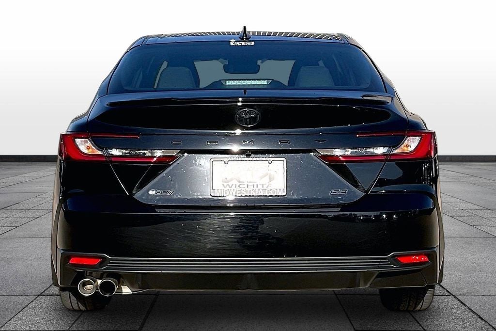 A dynamic performer, our 2025 Toyota Camry SE Sedan is designed for miles of smiles in Midnight Black Metallic! Motivated by a 2.5 Liter 4 Cylinder and 2 Electric Motors providing a combined 225hp to a paddle-shifted eCVT for gear changes on your command. This Front Wheel Drive sedan also features a sport-tuned suspension for quicker cornering, and it returns 47mpg in the city and nearly 48mpg on the highway. Athletically inspired Camry details like a black sport-mesh grille, racing-inspired front air curtains, dual chrome exhaust tips, a rear spoiler, a sport-style rear diffuser, a power sunroof, LED lighting, and black alloy wheels can leave a lasting impression.